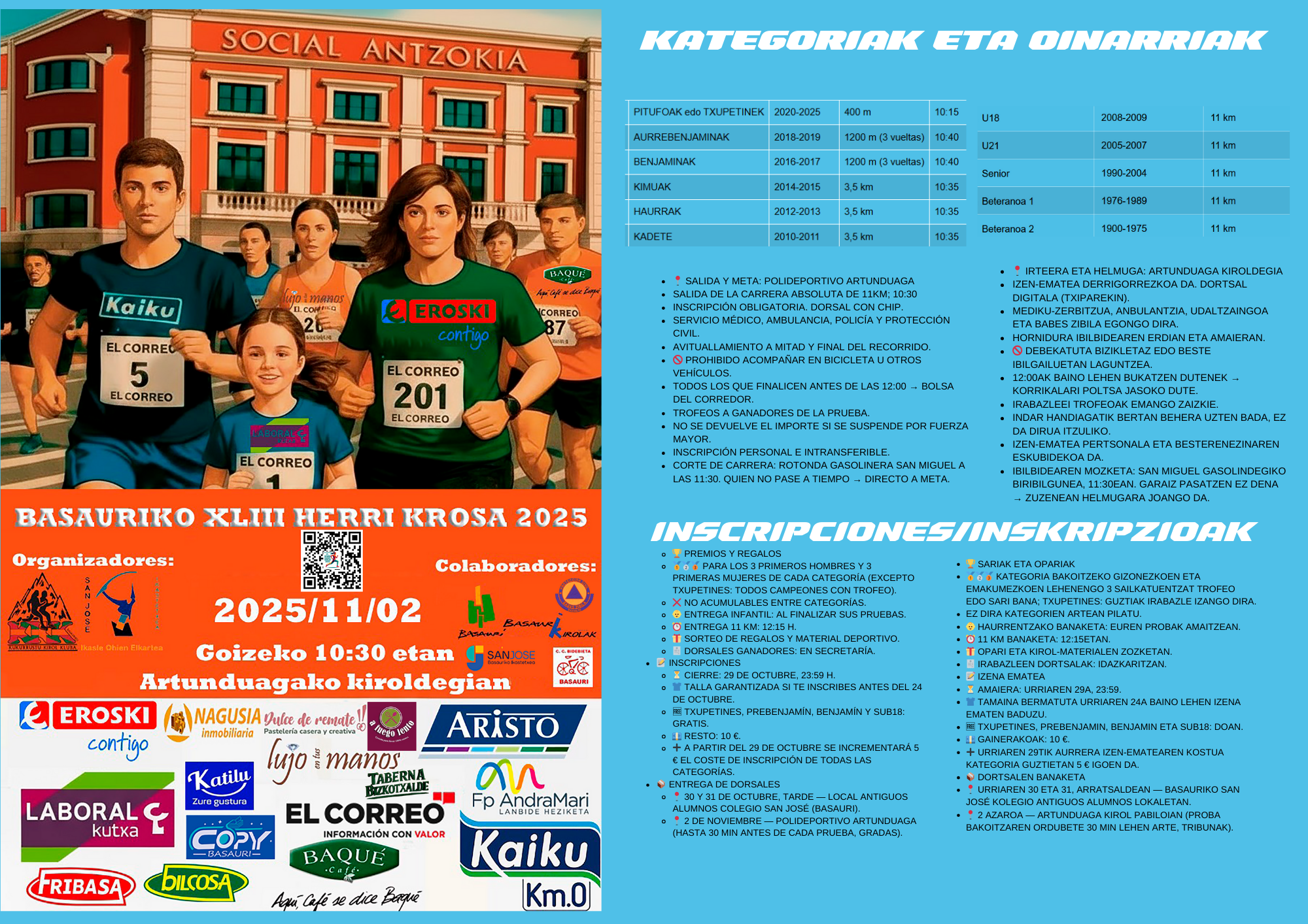 - Historia de Basauriko Herri KrosaNUESTRA HISTORIA Historia de Basauriko Herri Krosa Esta actividad de atletismo se inició en 1978, podemos decir que es la actividad estrella de la Asociación por su repercusión mediática, conocida a nivel provincial y autonómico.A partir de esta edición, los organizadores serán tanto los Antiguos Alumnos de San José como Kukurrustu Kirol kluba, aportando unos la experiencia en la organización de anteriores ediciones, y otros su conocimiento de este deporte y eventos deportivos. Sin duda, esta será una edición memorable.Destaca por su alta participación, cerca del millar, abierta a todas las categorías desde alevines a veteranos/as, con participantes de ambos… Lee más: Historia de Basauriko Herri Krosa